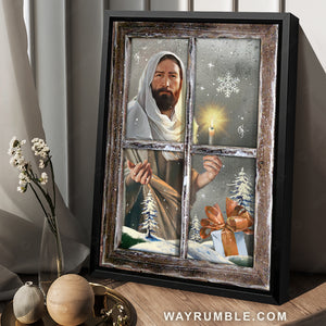 Bring some serenity to your home in the Christmas season with our Christmas eve, Jesus painting, Christmas gift, Winter season - Jesus Portrait Canvas Prints, Christian Wall Art. This art depicts an image of Jesus with a Christmas gift in the winter forest outside the window that will bring a sense of peace to your soul. The color scheme makes it a versatile piece in nearly any style of home! Hang this Christmas eve, Jesus painting, Christmas gift, Winter season - Jesus Portrait Canvas Prints, Christian Wall Art in any room in your home with the Christmas tree to be ready to welcome the guests who are invited to the Christmas celebration!