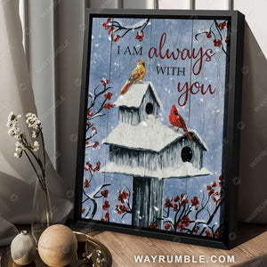 Cardinal painting, Winter forest, Cranberry tree, I am always with you - Heaven Portrait Canvas Prints, Wall Art