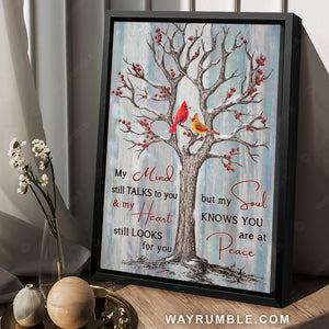 Cranberry tree, Watercolor cardinal, Winter painting, My mind still talks to you - Heaven Portrait Canvas Prints, Wall Art