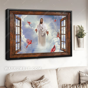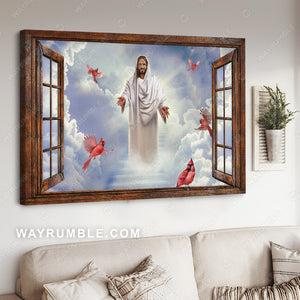 The way to heaven, Jesus drawing, Red cardinal, Beautiful sky - Jesus Landscape Canvas Prints, Christian Wall Art