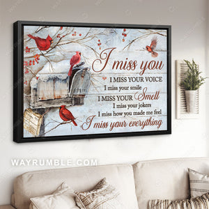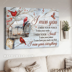 Vintage birdhouse, Red cardinal, Winter drawing, I miss your everything - Heaven Landscape Canvas Prints, Wall Art