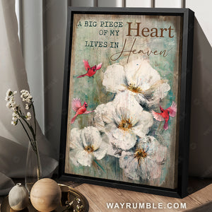 What do you choose to decorate your house? Hope this White climbing roses, Red cardinal, A big piece of my heart lives in heaven - Jesus Portrait Canvas Prints, Wall Art will bring to your home joy and full of happiness. With white climbing rose, red cardinal, vintage painting, and meaningful quotes will make your house become brighter and more delightful. This amazing wall art is also a perfect gift for your friend, your lover, and even your family.