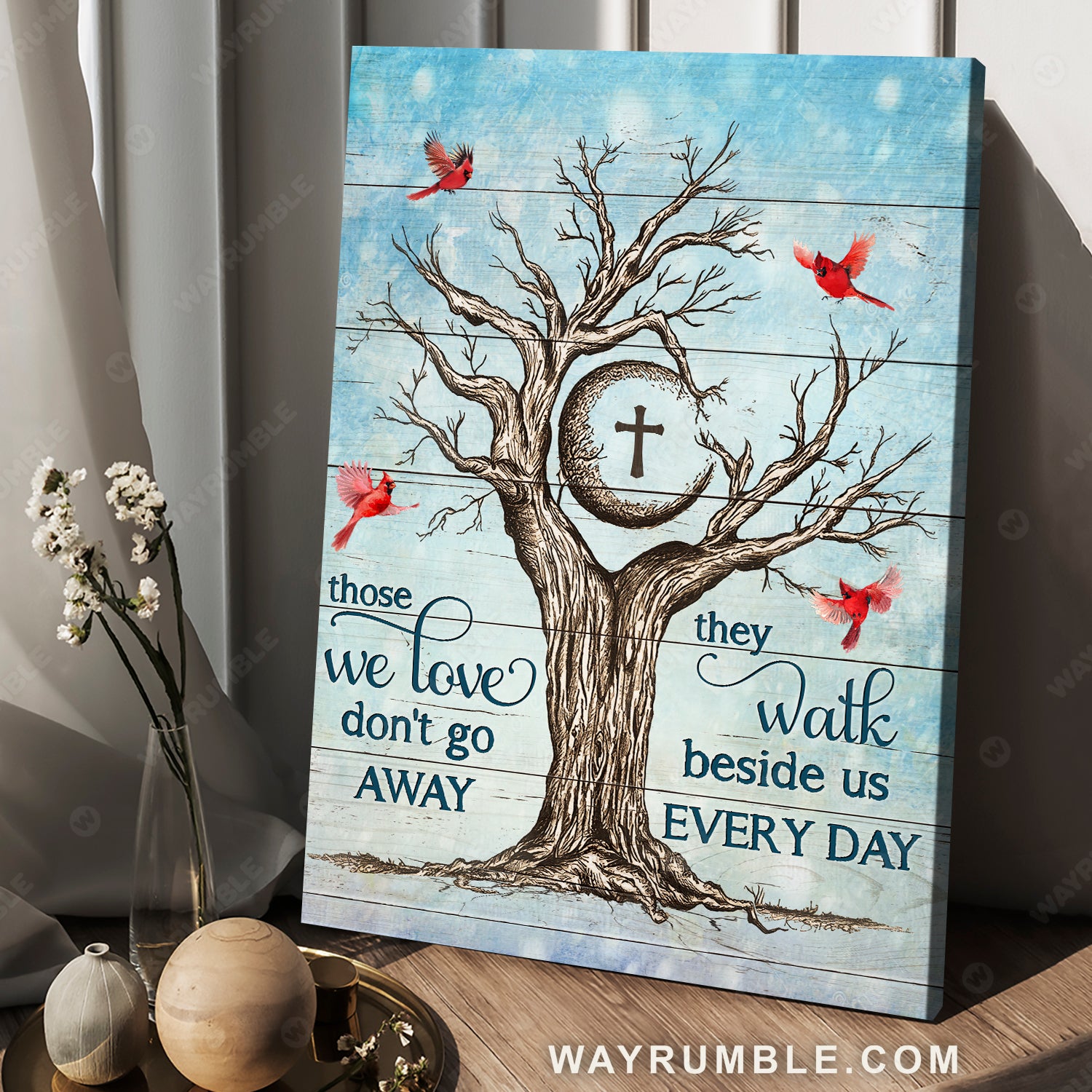 Oldest tree, Cross symbol, Red cardinal, Those we love don't go away - Heaven Portrait Canvas Prints, Wall Art