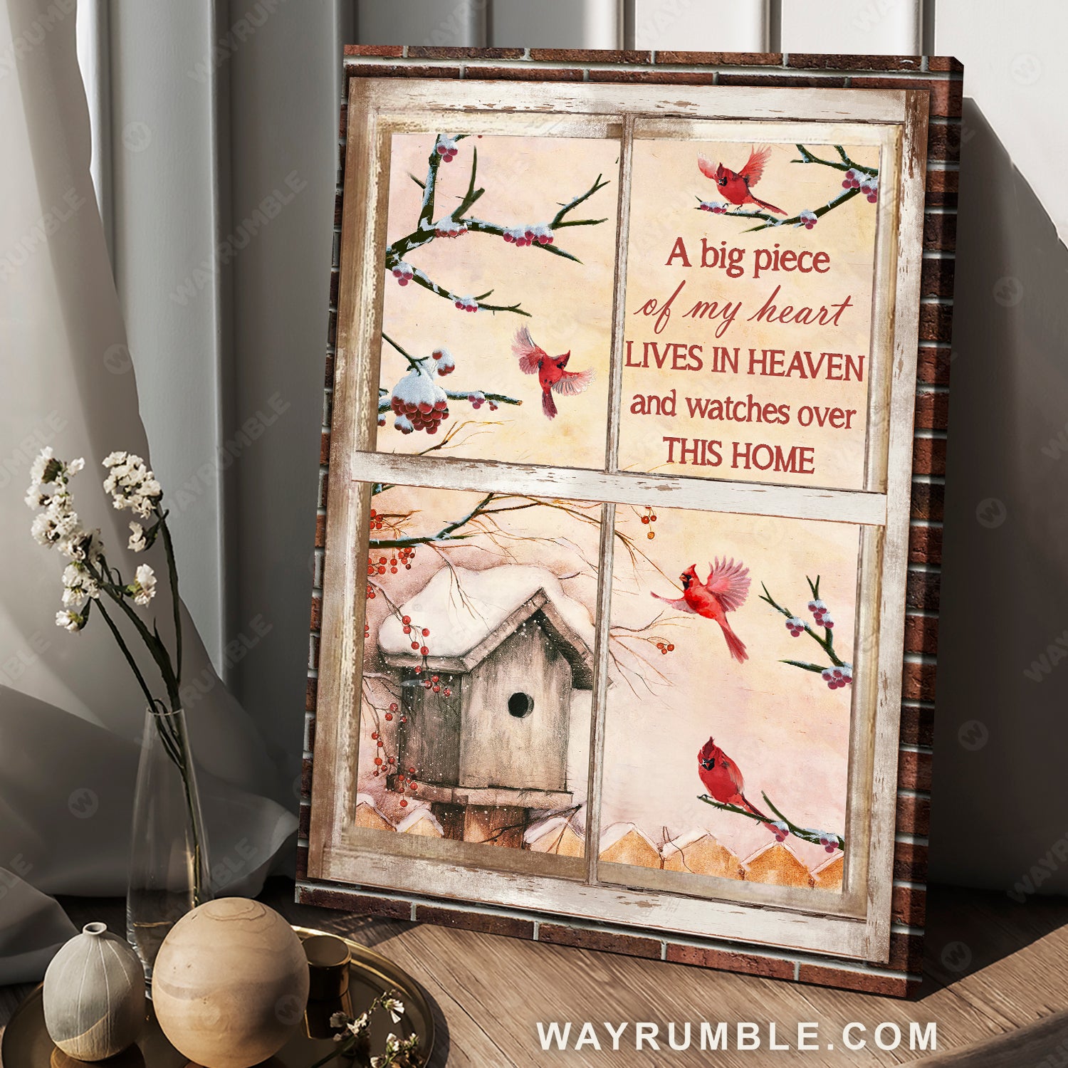 Snow birdhouse, Frozen cranberry, Cardinal, A big piece of my heart lives in heaven - Heaven Portrait Canvas Prints, Wall Art