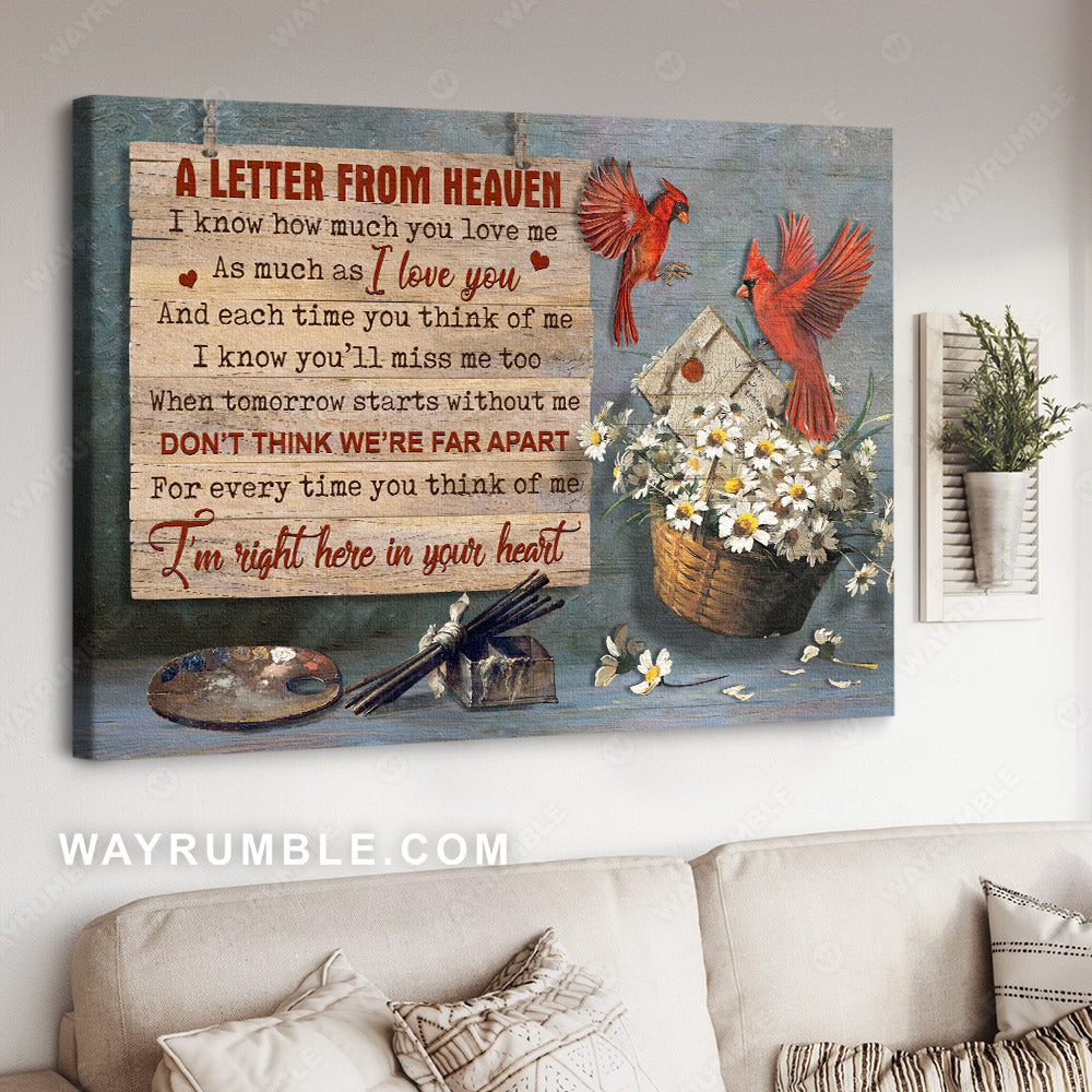 Vintage letter, Red cardinal, Daisy, A letter from heaven - Heaven Landscape Canvas Prints, Wall Art