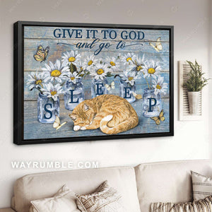 Yellow tabby cat, Beautiful butterfly, Daisy flower, Give it to God and go to sleep - Jesus Landscape Canvas Prints, Christian Wall Art