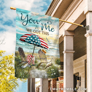 Beach umbrella, USA flag, Sunrise ocean, We got this - Couple Flag