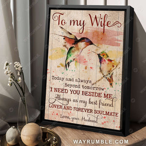 Do you want to find a romantic gift to express your love for your wife on her birthday or to celebrate your anniversary? Then To my wife, Hummingbird watercolor painting, I need you beside me - Couple Portrait Canvas Prints, Wall Art will be an ideal choice for you!