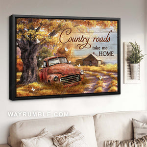 Gorgeous autumn season, White butterfly, Old red truck, Country roads take me home - Family Landscape Canvas Prints, Wall Art