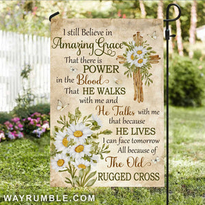 Flower cross, Stunning daisy, White butterfly, I still believe in amazing grace - Jesus Flag