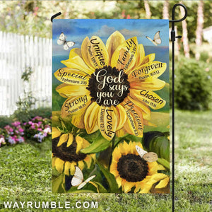 Stunning sunflower, Sunflower field, Small butterfly, God says you are unique - Jesus Flag