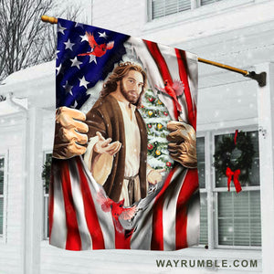 Walking with Jesus, Beautiful cardinal, Us flag artwork, Christmas tree - Jesus Flag
