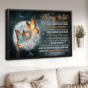 To my wife, Dandelion flower, Beautiful butterfly, I found my missing piece - Family Landscape Canvas Prints, Wall Art