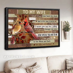 To my wife, Male and female cardinals, Autumn leaves - Family Landscape Canvas Prints, Wall Art