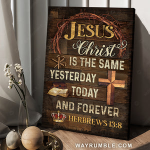 Bring some serenity to your home with our Bible verse, Crown of thorns, Jesus Christ is the same yesterday, today and forever - Jesus Portrait Canvas Prints, Christian Wall Art. This art depicts an image of a crown of thorns with meaningful, soothing-for-soul words in the Bible that will bring a sense of peace to your soul. Furthermore, the color scheme makes it a versatile piece in nearly any style of home. Bible verse, Crown of thorns, Jesus Christ is the same yesterday, today and forever - Jesus Portrait Canvas Prints, Christian Wall Art can be displayed on the wall of your home's kitchen, living room, bedroom, bathroom, or outdoor space. They can also be hung on the walls of your office, building, hotel, restaurant, or even coffee shop.
