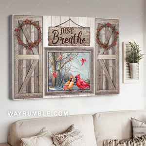 Cardinal painting, Wooden window, Cranberry wreath, Just breathe - Jesus Portrait Canvas Prints, Christian Wall Art