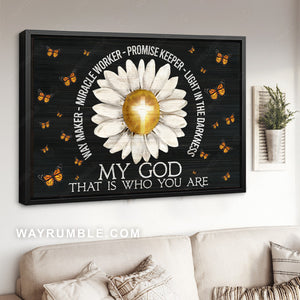 Daisy painting, Cross symbol, Monarch butterfly, My God that is who you are - Jesus Landscape Canvas Prints, Christian Wall Art