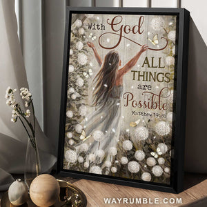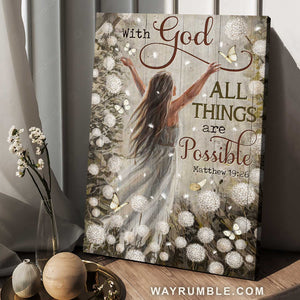 Your house seems too boring and you are looking for some decorations which can brighten up your living space? Then, this Dandelion field, Lovely girl, White butterfly, With God all things are possible - Jesus Portrait Canvas Prints, Christian Wall Art is suitable the most for you!