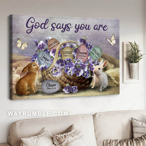 Easter bunny, Easter egg, White butterfly, God says you are - Jesus Landscape Canvas Prints, Christian Wall Art