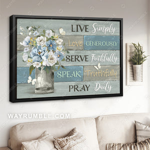 Flower painting, White butterfly, Live simply, speak truthfully, pray daily - Jesus Landscape Canvas Prints, Christian Wall Art
