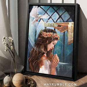 Gorgeous crown, Pretty flower wreath, Holy spirit dove, Beautiful queen - Jesus Portrait Canvas Prints, Christian Wall Art will suit any room from the living room, bedroom, kitchen to the entryway in your house or your office, building, hotel, restaurant and even the coffee shop,...