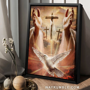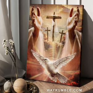 Make your home becomes more perfect with our Holy spirit dove, Three wooden crosses, Jesus hands, Path to heaven - Jesus Portrait Canvas Prints, Christian Wall Art. Across our artwork, it depicts an image of Jesus’s hand with the three rugged crosses and a holy spirit dove in heaven that will bring a sense of peace to your soul. Furthermore, the color scheme makes it a versatile piece in nearly any style of home. Holy spirit dove, Three wooden crosses, Jesus hands, Path to heaven - Jesus Portrait Canvas Prints, Christian Wall Art is also perfect for those who believe in Jesus. Let’s show your passion to visitors with this unique wall art which is hung on your wall in any room from the living room, bedroom, kitchen to the entryway in your house or your office, building, hotel, restaurant and even the coffee shop,...