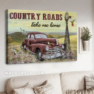 Hummingbird, Old red car, Windmill on meadow, Country roads take me home - Jesus Portrait Canvas Prints, Christian Wall Art