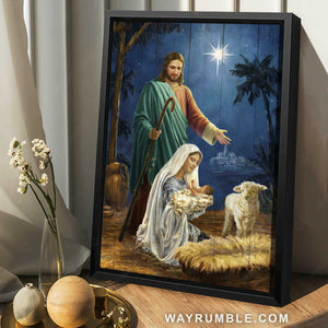 Our Mother Mary, Lamb of God, Star of Bethlehem, The birth of Jesus - Jesus Portrait Canvas Prints, Christian Wall Art will help you create a peaceful atmosphere in your home. This artwork features an image of the day Jesus was born with mother Mary, the Lamb of God and a shining star of Bethlehem in the sky that will uplift your spirits. Additionally, the color combination makes it adaptable to almost any type of house decor. Mother Mary, Lamb of God, Star of Bethlehem, The birth of Jesus - Jesus Portrait Canvas Prints, Christian Wall Art can be displayed on the wall of your home's kitchen, living room, bedroom, bathroom, or outdoor space. They can also be hung on the walls of your office, building, hotel, restaurant, or even coffee shop.