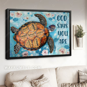 Sea turtle, Blue water, Flower on water, God says you are - Jesus Landscape Canvas Prints, Christian Wall Art