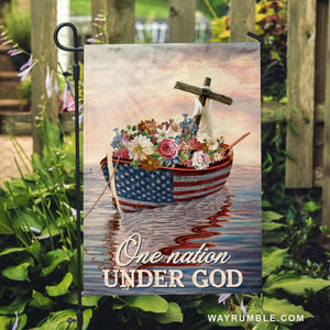 US flag, Boat painting, Cross symbol, One nation under God - Jesus Flag