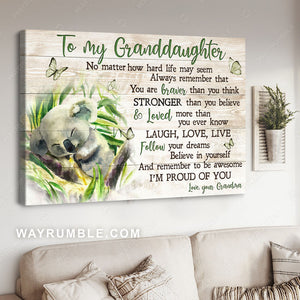 Are you looking for a special gift for your Granddaughter? Surprise your granddaughter with this gorgeous canvas Grandma to granddaughter, Koala bear, Green field, I'm proud of you - Family Landscape Canvas Prints, Wall Art that expresses your love for your little girl.