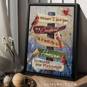 Cardinal drawing, Wooden signs, Whisper I love you - Heaven Portrait Canvas Prints, Wall Art