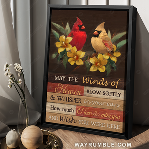 Watercolor cardinal, Yellow flower, May the winds of heaven - Heaven Portrait Canvas Prints, Wall Art