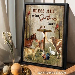 Make your home becomes more perfect with our Animals drawing, Wooden cross, Forest view, Bless all who gather here - Jesus Portrait Canvas Prints, Christian Wall Art. It depicts an image of many animals surrounding the wooden cross in the forest. Furthermore, the color scheme makes it a versatile piece in nearly any style of home. This Animals drawing, Wooden cross, Forest view, Bless all who gather here - Jesus Portrait Canvas Prints, Christian Wall Art is also perfect for those who are religious Christian. Let’s show your passion to visitors with this unique wall art which is hung on your wall.