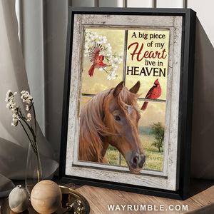 Express your emotions to your loved one who has gone with our Beautiful horse, Red cardinal, Jasmine, A big piece of my heart live in heaven - Heaven Portrait Canvas Prints, Wall Art. This artwork is a reminder for you that even though the person you loved is gone, your heart is still with them in heaven. Hope our strong horse and pretty cardinals with lovely jasmine flower and meaningful, soothing-for-soul word of Beautiful horse, Red cardinal, Jasmine, A big piece of my heart live in heaven - Heaven Portrait Canvas Prints, Wall Art will bring the presence of the deceased to ease your nostalgia.