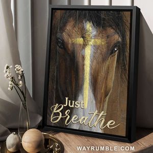 Make your home becomes more perfect with Horse face, Horse drawing, Cross painting, Just breathe - Jesus Portrait Canvas Prints, Christian Wall Art. It depicts an incredible image of a horse's face with the cross painting. Furthermore, the brown color scheme makes it a versatile piece in nearly any style of home. Our Horse face, Horse drawing, Cross painting, Just breathe - Jesus Portrait Canvas Prints, Christian Wall Art is also perfect for those who believe in Jesus. Let’s show your passion to visitors with this unique wall art which is hung on your wall.