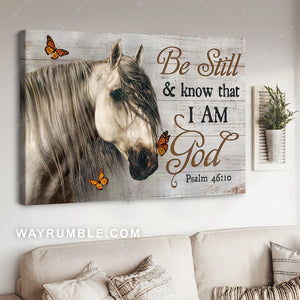 Horse painting, Monarch butterfly, Wild animal, Be still and know that I am God - Jesus Landscape Canvas Prints, Christian Wall Art