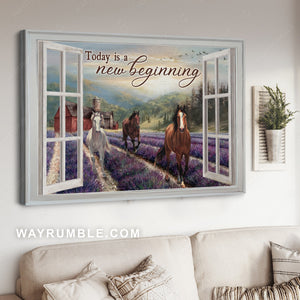 Lavender farm, Horse running, Nature painting, Today is new beginning - Jesus Landscape Canvas Prints, Christian Wall Art