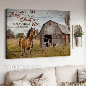 Running horse, Green meadow, Windmill painting, I can do all things - Jesus Landscape Canvas Prints, Christian Wall Art