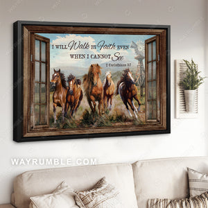 Running horses, Meadow land, Windmill, I will walk by faith - Jesus Landscape Canvas Prints, Christian Wall Art