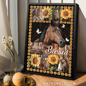 Sunflower background, Brown horse, Butterfly, Simply blessed - Jesus Portrait Canvas Prints, Christian Wall Art will suits any part of your home, including the living room, bedroom, kitchen, and even the outdoor space.