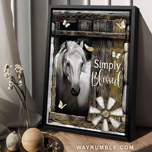 White horse, Old windmill, Wood plank, Simply blessed - Jesus Portrait Canvas Prints, Christian Wall Art is a beautiful canvas that may be displayed in any part of your home, including the living room, bedroom, kitchen and even the backyard.