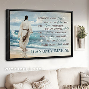 This wall art that contains the lyrics “I can only imagine” is also a perfect canvas to help you during a hectic period of working. Our Jesus painting, Ocean landscape, Walking to the sea, I can only imagine - Jesus Landscape Canvas Prints, Christian Wall Art suits any spaces in your house, ranging from kitchen, bedroom to the living room.