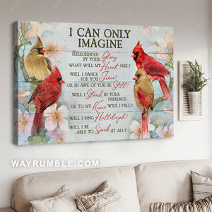Pink peach blossom, Cardinal drawing, Spring painting, I can only imagine - Jesus Landscape Canvas Prints, Christian Wall Art