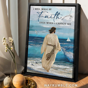 Add a hint of wonderlust to your walls with this Amazing Jesus painting, Stunning ocean, Seagull, I will walk by faith - Jesus Portrait Canvas Prints, Christian Wall Art!