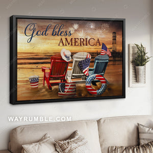 Beach chairs, American flag, Sunset beach, God bless America - Jesus Landscape Canvas Prints, Christian Wall Art