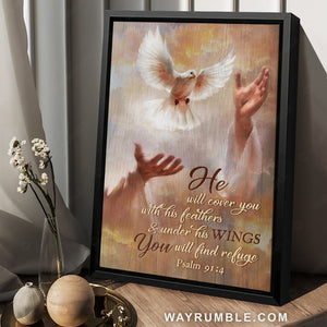 With a beautiful dove in Jesus’s hand painting and the meaningful lyric from the Bible, this Beautiful dove drawing, Jesus's hand, He will cover you with his feathers - Jesus Portrait Canvas Prints, Christian Wall Art will become a significant feature in your house. Beautiful dove drawing, Jesus's hand, He will cover you with his feathers - Jesus Portrait Canvas Prints, Christian Wall Art can be hung in any part of your house from the kitchen, bedroom, and bathroom to the living room.
