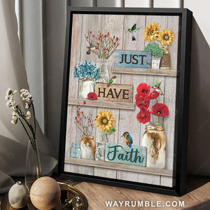 Beautiful poppy, Pretty sunflower, Hummingbird, Just have faith - Jesus Portrait Canvas Prints, Christian Wall Art will suits any part of your home, including the living room, bedroom, kitchen, and even the outdoor space.