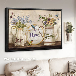 Blue small flowers, Oval plate, Hummingbirds, Just have faith - Jesus Landscape Canvas Prints, Christian Wall Art