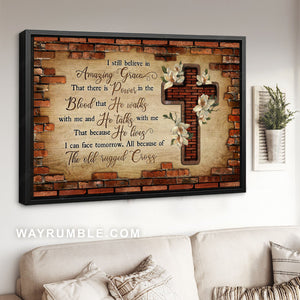 Camellia flower, Brick wall, Jesus cross, The old rugged cross - Jesus Landscape Canvas Prints, Christian Wall Art